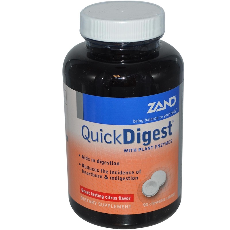 Zand Quick Digest tablets are a great tasting before and after meal supplement containing the plant based enzymes Lipase, Cellulase, Amylase, Papain and Bromelain with Papaya Fruit and Calcium to support healthy digestion.